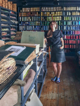 Archival research and fabric selection at one of Britain’s few remaining jacquard mills